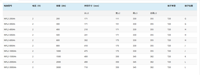 容量范圍:33Ah-3000Ah(25°C)